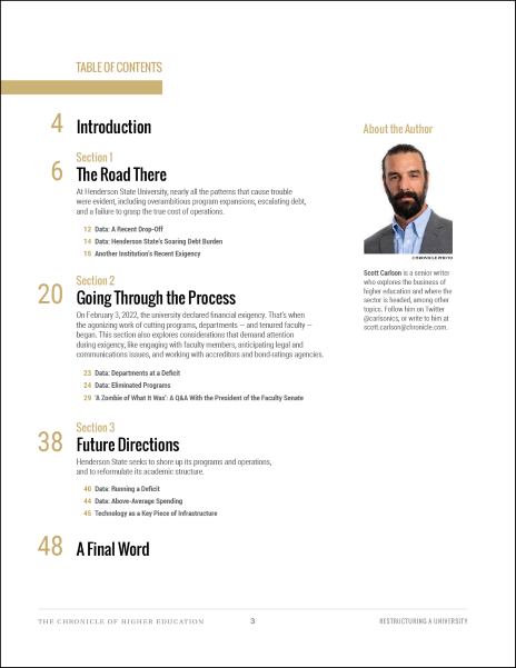 This is an in-depth case study of an institution, Henderson State University, that faced such a predicament and realized it could no longer avoid difficult decisions. It outlines the missteps made and warnings ignored. And it’s a detailed account of how, in 2022, the institution declared financial exigency, a mechanism colleges can use to engage in a transparent and orderly process to restructure. While this case study focuses on one institution’s experience, it offers insight into the factors and tradeoffs that any leader contemplating a large-scale restructuring should anticipate.